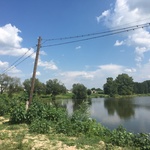 Біля водойми стоїть знак "Увага! Вилов риби заборонено. ГО Клуб рибалок Симонова"