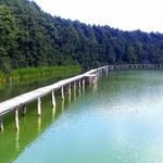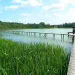 Від будиночка до плеса прокладений пірс з альтанкою посеред води. Окрім того, ще одна гігантська кладка уздовж берега, довжина якої біля 250 м – вперше бачив таке на волинських озерах.