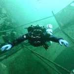 Внизу можна побачити дерева, порослі мідіями, уламки якихось конструкцій і безліч смугастих риб з раками. На самому дні взагалі практично нічого не видно – сонячні промені туди майже не доходять.