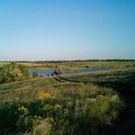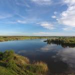 Рослинність водойми: по периметру зрідка ростуть молоді дерева, береги у воді трохи зарослі лепехою.