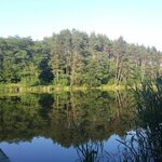 Рослинність водойми: саме плесо водойми чисте, а по периметру ростуть хвойні і листяні дерева.