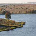 Ось так виглядає цей ставок без води (фото клікабельні). Весь простір за островом перетягнуто колючим дротом у декілька рядів.