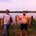 Риба різна в основному карась, білий амур, карп, щука, йорж, плотва, краснопірка з тих що ловили але є й інша.