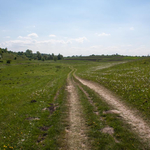 В Белой кринице после мостика поворот направо, назад под мостк и прямо по дороге на гору. Наверху нараво через старую ферму полем-лугом к каскаду ставов.