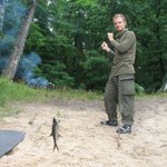 Але про рибалку. Взяли у місцевих човни і вийшли на воду. Місцеві нас просвітили про глибини і почали кидати спінінги. Віброхвости, колєбалки, вєртухі – у всіх чотирьох нуль. Шо під берегом, шо на глибинах. Зробили перерву, висадились на острів і пообідали. Потім знову кидали хвиля і вітер були такі, що на плоскодонках ставало страшно.