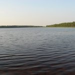 Отже, найбільше озеро Велике. Воно дійсно здоровенне, вода в ньому з коричнево-рудим відтінком. Дно піщане і біля берегів мілке.