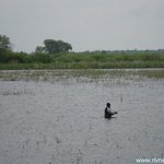 На човнах ловити заборонено (не для всіх 🙂 ), а от в забродах самий раз, попід берегом, вздовж комиша де з берега не закинеш. Глибина десь до пояса, и хвостів буде раза в два більше