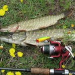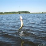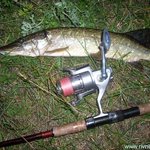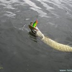 Товариш після клювання обірвав блешню з куском нитки при підсіканні. Бідкається, що втратив уловисту вертушку, на яку до цього трагічного моменту вже зловив 4 щучки (Аглію лонг), а іншої такої ж немає. Я в той момент був поруч і підійшовши зі словами “зараз я її зловлю” роблю закидання. Як годиться – відразу ж клювання, підсічка, Є! Протягнув пів дороги – ніби схід, а ніби ні. Не зрозуміло. Виявилось 700г щучка з Мепсом в роті зійшла і з моєї вертушки, проте заплуталась обривком 10 метрів нитки за мій трійник. В останній момент я все таки встигнув ухопити кінець нитки и витягнув трофей. Всі були задоволені: я першою щукою, товариш – врятованою вертушкою.