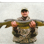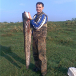 Був на місці приблизно в 19.00. Одразу попав під гарний дощ і шквальний вітер. Поматюкавшись, сховався в машині і вже було збирався втікати. Але, на щастя, через хвилин 15-20 дощик притих. Виймаю снасті, починаю закидатись. Як насадку використовував горох (жовтий варений і зелений консервований) на бойловому монтажі в розрахунку на коропа. Ще закинув одного “спутніка”. Саме він запрацював практично одразу: дрібна густера ціплялась фактично на льоту. Це швидко набридло і, закинувши добрячу “бомбочку”, на легенькі посмикування вже не зважав, очікуючи гарної покльовки. Десь близько 11 майже одночасно були зловлені гарний карась (на око – грам 700-800) і трохи менший підлящик. Далі тишина години до другої. Саме в цей час один із сигналізаторів показує покльовку в берег, тому швиденько підсікаю. Відчув приємну важкість і швидкий рух в берег (до речі, на цьому ставу помітив закономірність – нормальна риба клює майже завжди в берег з швидким ривком у прибережний очерет, звідки витягнути її дуже проблематично). Підмотую жилку, намагаючись тримати контакт з рибою. Тут відбувається швидкий розворот і я відчуваю, що тягне, мяко кажучи, не по дитячому. Благо, фрікціон був налаштований правильно. Тримаю вудку двома руками, під завивання фрікціона риб знімає метрів 25-30 жилки і йде попід очеретом різко вліво. Там, очевидно, трохи втомившись і знайшовши якусь ямку, він тупо стає і впирається рилом. Хвилин 15-20 тривало це стояння. Риб нікуди не рухався, але й мої намагання його підняти були марні. Пробую віддавати жилку: теж марно, став і стоїть. Я в розпачі. Оскільки риба ознак життя не подає, думаю: ну знов хороший звір засів в очереті (вже були неодноразові прецеденти). Приймаю рішення: прив’язую вудку, ослабляю фрікціон, роздягаюсь, беру підсак, ножа і лізу в воду визволяти свій улов. Глибина біля пірса невелика, десь 1,60, але на дні дуже великий шар мулу, який утруднює пересування. Враження, звичайно не з приємних: темінь, навколо ні душі, я по шию в воді бреду невідомо куди… Відійшовши метрів 10 від пірса, знову чую вищання фрікціона і бачу, що жилка рухається від берега. Бігом (!!!) намагаюсь повернутись на пірс. Якось вилажу, хапаю вудлище, і помаленьку починаю затягувати фрікціон. Звір то ніби трохи піддавався, то з легкістю знімав метри жилки. Так тривало довго. Тільки тут я усвідомлюю, що клюнуло ж на саму благеньку мою снасть невідомого китайського виробника. Ледь не плачу, але боротьба триває і поступово відчуваю, що суперник дає себе підтягувати. Побачив його у світлі ліхтарика метрів за 5 від пірса і ледве не впав.