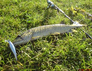 Вчора був в Хотині, правда попав пізно - почав ловити в 8,30. Буває, що відразу відчуваєш, буде клювати, чи ні. Коли ні, то й ловити ліньки. Незважаючи на це, перепробував свій результативний арсенал і нуль. Одне але. Не вирішивши проблему з дальністю закиду, не зміг покласти приманки щуці прямо під носа. Це було на 3-му кар"єрі. Перейшов шукати рибу на 2-й кар"єр. Очевидно, що щука була дуже л...