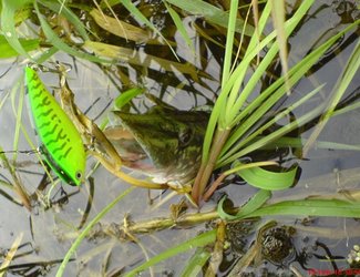 Три последних выезда были безрезультатными. Пару раз выскакивала на воблеры из прибрежных кустов (в метре от берега) травянка около 700-800 гр., но показав мне язык убегала. Раз была атака офсетной приманки, но не засеклась, думаю, что мелочь. Последний раз плохо засеклась воблером и сошла возле берега, видимо надо ставить тройники побольше. Очень много рыбаков пытаются поймать хищника на карье...