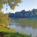 Озеро з ліліями. Запустили невеликого карпика. Клює активно. 200 грн рибалка з 5 ранку до 9 вечора. В ціну входить 2.5кг карпа і 2 кг карася. Дрібного карпа треба відпускати.