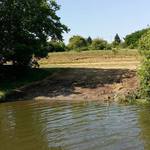 Берег має природні затоки і заглиблення, є два виражених виступи (ніби топові сектори). Зона С повністю в лісі. Дуже високий – місцями до 2 м над водою – берег. Сектори є в самих хащах – дерева заважають закидати, крім того, дуже крутий берег. В найглибших місцях біля дамби глибина сягає до 4 метрів, а от на півночі водойми глибина води близько 1 м.