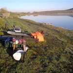 6-ою і 7-ою будками навпроти виходу з острова. Вітер був північний і зустрічний відносно мого місця розташування,тому закинувся не кормившись. Ще до настання темноти впіймав 3 тузіки по1-кг. Біля 20:40 вітер стих і я закинувши пару спомбів почав готувати місце ночлєга. Розмістився прямо на березі. Потім була вечеря,попивання вінчика домашнього.Біля 22:45 я влігся на розкладушку і думав заснути,але біля 23-ої паравоз на клубніку,і так до 4