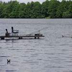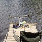 Розпочинаю ловитити: 2 фідера -60 і 40метрів на кукурудзу і горох, коропова палка з полуничними бойлами - 50метрів(перший раз закидував,тому мала відстань), попавчанка 3-4метри від берега на опариш. Погода нормальна,як на мене, але заважає вітер. За пару годин ні однієї покльвки. Закрадається думка,що результат буде як минулого разу - нульовий. Але ось раптом перестав дути вітер,зникли хвилі і все стало на свої місця в плані погоди. Глянувши на рівне зеркало води вирішив покидати поппер - потренуватись.
