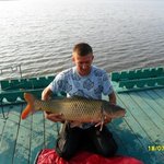короп 15кг. На що він клюнув у нас було 2 варіанти горох або бойл, точно дізнатись не змогли так як волос був пустий, а перезакидувались вночі зпросоння.Риба була зважена і після приїзду власника водойми випущена на волю