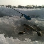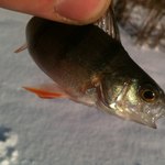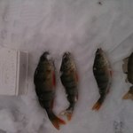 . Потім просидівши ще хв 30 біля чотирьох лунок вирішив змінити локацію, пішов ближче до " камиша " . Перша пробурена лунка не змусила довго чекати, одна хвилинка гри і зразу послідувала покльовочка так і попався перший в цьому сезоні окунець ( 30 гр.