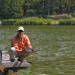 Десь до обіду сиділи без жодної клюваки. Де-не-де, зрідка, дзинчали бубенці у сусідів, а в нас було достатньо часу на затяжний сніданок. Пробували бойли різних розмірів і всяких вичурних смаків в поєднанні з ароматизаторами. Від скуки очі починали вже дивитися в сторону кавуна, але довгоочікувана клювака розрядила обстановку. Холоста! Але азарт оживав. Спрацював "ананас". Через короткий проміжок часу таки "збиваємо" першого. Бєшанної активності риби так і не наступило, але визжання фрикціону час від часу заставляло тиск підніматися. Фаворитами серед насадок виявились кукурудзяні бойли, а також було декільках клювак на штучну кукурудзу. Можливо помиляюсь, але мені здається, що зараз сезон кукурудзи, і тому вона працювала краще. Згоден, робити статистику по одній рибалці - дурниця. Але така у рибака робота - видумувати залізні стратегії, які, в принципі, і не повинні завжди працювати, але вони повинні просто бути