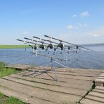Отож, родпод на місці , робочі палки готові, розпочинаємо маркування. Перш за все ми пробили дно за допомогою груза , було дуже добре відчутно, що в зоні нашої ловлі було пару перепадів глубин , але не досить великих(біля 20 см) , дно в деяких місцях було досить твердим , а в деяких замуленим і з невеликими корчиками, які на пару секунд затримували маркерний груз. За пів години ми проскоридили майже всі участки,які нас цікавили(так як у нас є карта глубин,то ми наперед знали,що шукали) , і ,не чекаючи ніяких проблем, вирішили поставити поставити маркерний поплавок, для визначення точного перепабу глубин. Маркерування проводили , починаючи від відстані в 120 метрів і до 40, так як була можливість половити і на ближніх дистанціях. Отож, після десятка вдалих проходів маркером зправа наліво по зоні ловлі , ми знайшли саме той перепад з досить твердим дном ,на якому і планували ловити. І ось після ще одного вдалого на половину проходу на відстані 70-80 метрів відбувається зацеп, з яким справитись доволі тяжко і після певної боротьби наша маркерна оснастка була обірвана. На мою думку , це сталося через те,що через ті маленькі корчики , які приводять до зацепу, сам груз проходить досить легко, а от уже більш громіздка снасть — така як маркерна чи навіть сам повідок дуже добре чіпляється. Так як маркер — це не така вже й дорога річ, ми переживати не стали — тим більше , що після зацепа він всплив і дуже добре показував нам, де саме знаходяться ті самі зловіщі корчики , а так як дистанція лову було вже вибрана , то ми знали, що потрібно кидати метрів 15-20 за маркер. Отож ми вирішили нарешті закинути наші робочі паліняки. 3 палки в воді , заброс четвертої на межу ризику і тут раптовий порив сильного вітру і снасть лягає правіше на 1,5 метри від маркеру, дістаємо її — і тут чудо зацепляємо шоклідер і наша маркерна оснастка з поплавком вже на березі. Вирішили продовжити маркування і знову відправляємо маркер на ліву сторону нашої зони ловлі — знаходимо бровку яка нас цікавить, шукаємо щось далі і знову чудо — зацеп!!!! Знову обрив, знову поплавок всплив над корчами на тій же дистанції - вирішивши , що так і має бути, більше навіть не пробуємо маркуватися і закидуємо останню палку за 2 метри від зони ризику і продовжуємо готувати сектор для нормального існування на протязі доби (палатка, розкладушки, столик і т.д.т.п) Процес пройшов досить швидко — все завдяки прохолодному Віскаріку ( все ж таки свято).