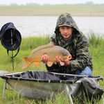 взяли. А сам Ігорко в цей час дістав коропа на 15,5 кг. Ось тут фото.