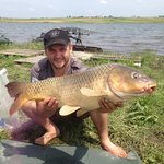 Скажу, что на такой клёв карпа я ещё не попадал. Доходило до того, что после завоза четырёх оснасток - не успевала лодка дойти до берега, как начинали паравозить все 4 удочки на род-поде. Удалось сразу и многократно побить свой рекорд по карпу - 11800, таких я ещё в руках не держал. Это оказался наш биг-фиш за первый день, а основная массы рыб были в диапазоне 6-8 кг. К концу дня натаскался так, что уже еле руки поднимал, плюс погода была не самая приятная - при завозе оснасток приходилась выгребать против очень сильного встречно-бокового ветра.