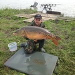 На ночь поменяли бойлы и завезлись ещё раз. Только ушли спать как начался небольшой дождь - пришлось сорчно собирать разложенные вещи и прятать все лишнее в машину. Не успели мы закончить сброры, как около двух часов ночи поклёвка - и на том конце серьёзная рыба. Это окзался биг-фиш Олега и вообще максимальная рыба за сессию, карп потянул почти на 15 кг - 14800. Положили рыбу в карповый мешок до утра, и ушли спать. Удочки даже не завозили - постоянные поклёвки не дали бы уснуть.