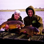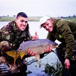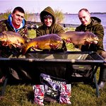 На наступний ранок знову знову підйом Віктор вже сидить і зачаровує карасиків своєю прикорм кою, я ж посьорбавши кави пере закинувся і пару спомбів на точку, але тишина. Погода була просто супер, все що потрібно для шалених паровозів було, от тільки чомусь чути не довелося, лише тільки сусідній сектор в якому рибалив і керував парадом Северин, йому вдалося розкачати сектор так що протягом години в нього відбувалося одна а то й дві покльовки, і працювали всі прути. СполядаючиСпоглядаючи на тишу в моєму секторі і зміну виразу моєї фізіономії в гіршу сторону, виважування частини рибівгрибів Северин доручив мені, адже в команді повинно бути все порівну і потрібно всім ділитися та допомагати, хоча від своєї тактики та прикорми на не відступив нв ні кроку в сторону і дотримувався її до кінця, доб щоб зробити для себе якісь висновки, а не накидати одного, а потім зверху зовсім протилежного. І тут близько обіду 14.30 шалений писк сигналізатора Северина, підсічка і постійне втравлювання жилки, до того всі риби були взяті з берега, тільки я з підсаком орудував у воді. А тут Северин каже, що йдемо у воду разом, бо на відчуття щось серйозне. Протягом деякого часу боротьби і намагань підтягнути і завести його в підсак, я помітив як шок лідер який виходив з води в напрямку мене, а вихри води і хвіст був з метр від нього, і я зрозумів що то не тузік, але мовчу щоб Северин себе вів спокійно і не метушився, і з третього чи четвертого разу нам вдалося завести його в підсак, заглянувши в котрий я зрозумів що Северин побив свій минулорічний рекорд в 14 кг. Вага показала 15.300. Це дійсно був його день і його риболовна сесія, прикормка від Pelzer працювала і риба клювала по наростаючій динаміці.
