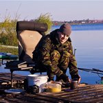 В ранці ставши за приготування прикорми вирішили спробувати 4 програми для визначення перспективніших. Северин обрав дві солодкі, мені ж лишилися м`ясні, ну що будем працювати і пробувати. Перший риб клюнув у Северина по обіді в 13.20 короп вагою 2.300, сезон розпочато і розпечатано, все супер працюємпрацюємо далі, а мої прути мовчать. Протягом дня в Северина ще декілька клювань, а в мене все мовчить. Здійнявся сильний вітер 9 м.с. що після вимотування снастей для пере закиду не давав змоги перезакинутися, а про точність в такий вітруган взагалі мова не могла іти, дугу видувало просто шалені, під вечір вітер почав слабшати, що дало змогу нормально і точно загодуватися і пере закинутися на ніч. Протягом дня Северин мав близько десяти клювань та спіймав 8 риб, найбільший з них заважив 9.000, а в мене тишина, хоча скучати не було коли, допомога з підсаком, перемотування свіжих лесок від Pelzer на запасні шпулі, кормління і пере закиди заповнили мій безкльовний день.