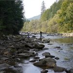 Вирішуємо спершу спробувати піймати форель на ріці Свіча. Сказано - зроблено. Прибуваємо, швиденечько напялюємо вейдерси, сумки, желети, оснащаємось і спускаємось до ріки. Декілька хвилин інструктажу від досвідченого Дімона, що потрібно робити, як проводити, йдемо пробувати відтворювати побачене....