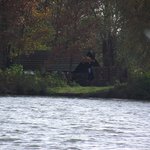 Тим часом, весь ранок постійно розсікав хтось на лодках з мотором ... це явно були не відвідувачі, але чи вони займались в іншому кінці ставу не берусь казати, що там сітки якісь чи що, чи кормили .. незнаю .. Але їздили часто... Дехто також рибачив з лодки ...