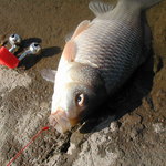 Весь карась приблизно однакового розміру - з ладошку, але мені пощастило витянгути одного грам на 200-250, і двух грам на 150. Один з 150-грамових карасів був зловлений на спутнік. Всього на спутнік я дістав карасів 3-4. Ті карасі всі клюнули на опариша і тільки один витягнув крючка з мастирки