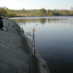 Десь о шостій тридцять почали працювати наші фідери, ми виловлювали на них карасики в середньому раз в 20 хвилин. На вудки в той день було зловлено мною трьох карасиків менших від мезинця і одного чи двух карасів на пучок мотиля столового розміру.