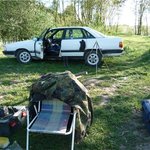 Все було добре, поки не приїхали (після обіду) на "жигулях" горе-рибалки. Лише уявіть собі: ви пригодували місце недалеко від берега, тихенько рибалите, надієтесь що обережний та обов"язково здоровецький корописько оцінить ваші зусилля... та раптом: залітають "чуваки" на авто, голосно грюкають дверима, кричать, потім їдуть геть (я аж зрадів, побачивши їх на іншому березі)...та за 30 хвилин, повертаються і .... КЛАКСОНЯТЬ