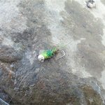 На обіді вже навіть і їсти не хотілось. Швиденько поповнюємо запаси мух і нашвидкуруч перехопивши знову у воду. Під час обіду Орест зв’язав декілька мух, на які йому вдень вдалось з одного місця припаркувати близько 10 харіусів розміром 20-25 см. Відповідно і у наших флайбоксах з’явилось кілька схожих. Та муха і дала мені одну єдину результативну клюваку за вечір. Як виявилось непогано працювала муха з срібною головкою та шартрезним тораксом. Коли всі мої а-ля Орест покінчались, то ще одне спрацювання було на німфу з такими ж характеристиками. В ямі за бурлякою зупинка німфи, підсічка, біля 5 серйозних жимів і прикрий схід….