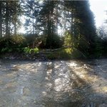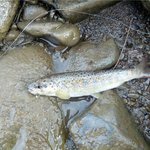 Ми з Віктором рушаємо вверх по річці, а Орест з Арсеном вниз. Вітя майже відразу ловить форельку вище того місця де рибалив я. Згодом має схід, покльовка за каменем вверх по течії, миттєво переміщається вниз метрів на 4-5 і ховається в глибині бурла під великою каменюкою. Він заходить в ту бурляку куди майнула рибка, але там уже нікого немає.