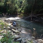 Перетягуємо речі через річку, бо під’їхати на наших авто безпосередньо до місця нашої стоянки, як ми гадали було проблематично. Але трішки пізніше наші здогадки були спростовані місцевими жителями, які форсували річку всіма видами транспорту, починаючи від мотоциклу закінчуючи лісовозами. Отже вирішили попоїсти та зачекати ранку аби річка трішки очистилась.