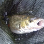 Вітаю всіх. Нарешті зареєструвався на форумі (Антон, дякую). Сьгодні зробив мабуть останній сплав на плоту по звичному маршруту - р-н Азоту. Попробував переключитись з жука на мокру та німфу - півтори години полоскання нічого не дали. Ніяк не можу навчитись контролювати проводку на плаву. Ніби все роблю як треба - а результат поки - 0. Переключився на жука (на №6). Не зразу але пішло. Сьогодні головень стояв на перекатах (минулий раз, в середу, перекати мовчали, працювали обратки за коряжниками) і після 11-ї перший вихід і ... схід - невдала підсічка, а був десь біля кг. Наступний перекат і ось перший. Заковтнув жука по самі гланди - прийшлось забирати - грам 600-700. І час закінчувати рибалку. На цьому все... Ось він. Прикро, що прийшлось забирати - звичайно відпускаю.