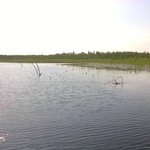 До обіду спінінгували, але щука мовчала, змістилися на мілководну частину озера і очерет, але також жодного удару