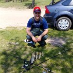 В итоге на Хотынской старице я - 5 щучек+3-4 окуня; Тохин 5 щучек+5-7 окуней; Миша-2 щучки+3-4 окуня. Весь товар возвращён Ихтиандру (он же Нептун)
