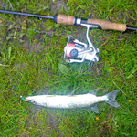 ) и два щурёнка, один совсем мелкий - грамм 100, не больше. SPIN делал ставку на более крупную рыбу и крупные приманку - поклёвок у него не было. Может крупная рыба из-за погоды была неактивная, а может мы её просто не нашли. Старицу обкидать толком тоже не успели, но время поджимало - пора было на маршрутку. В целом, считаю, разведка удалась - рыба, по крайней мере мелкая, есть, значит надо искать крупную.
