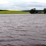 Переходим с ним левее дамбы. В надежде найти более крупного окуня я прошелся по левому берегу почти до конца, но видел только как окунь преследовал твистер. Много травы… Спрятавшись от ветра за холмом, попробовал даже попер, но глухо. Понял, что надо ловить то, что ловиться