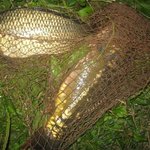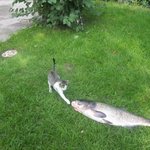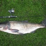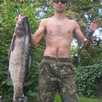 Я роняю телефон, далі потужний ривок і півтори години танців по березі (Ультралайт, флюр 0.16 і все те що минулого разу). Коли я його нарешті витягнув, біля мене вже стояла толпа зівак і їх предводітєль в особі сторожа. Тут починається негатив. Воно спочатку зажадало з мене плату за рибалку, як з карпятника, це при тому що він чітко бачив, що рибалив я на спінінг, а коли я відмовився, відвязав від дерева мого чесно пійманого на ЛМ товстолоба і сказав, що забере його. Аргументів у мене більше не лишалось я зміг домовитись лише на фоосесію: