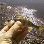 Окунь не активный, хотя думаю, это может быть связано и с временем суток - было около 3-х часов дня.