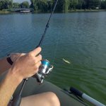 Доки я приїхав на гідропарк то Николай вже бороздив місцеві простори на човні. Ну і звичайно, що заробляв клювання. До мого приїзду вже був схід окуня та судакові клювакі.