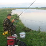 О 23:30 я з одним товаришем перебралися на човнику на інший берег і сіли на ямі закинувши росяники. Я використав переобладнане фідерне вулилише: оснатка Патерностер з вантажем в 50 грам і повідок сантиметрів на 40, гачок з дуже довгим ців'ям номер 8(бусурманська власифікація). Десь за хвилин 15 відчуваю удари і витягую першого сомика грам на 500, після цього з інтервелом десь в 10-15 хвилин постійно були клювання, загалом я спіймав 4 сомики, всі незалікового розміру, від 300 до 500 грам. А товариш нічого не спіймав