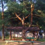 Около домиков была настоящая, как говорил персонаж Ивана Грозного, "ляпота" - сосонки и домик ложили тень на травку, здесь было просто прелестно отдыхать в жару.