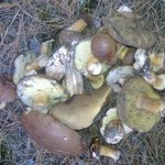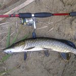 Вчора після обіду побував на одній невеличкій, але дуже гарній водоймі неподалік Костополя. Місце знаходження вказувати не буду. Скажу лише, що водойма місцевим рибалкам достатньо добре відома. Так от, поїхав туди за щукою, яка, за словами окремих рибалок, є цілком прийнятних розмірів. Щоб не описувати весь процес ловлі скажу, що за півтори години мною було впіймано два хвости. Один щучий недомірок грам на 300, який поплив підростати далі, та один екземпляр вагою 1,2 кг - поїхав зі мною додому. Цікавим було те, що цей екземпляр взяв приманку буквально за 1м від берегу. Я в цей час стояв за метрів 4 від берегової лінії і все досить чітко бачив, дякуючи гарній прозорості води. Спочатку навіть і сам неповірив, коли щука випливла із очерету і попливла в бік воблера.... Після риболовлі прогулявся ще по лісі, де назбрав трохи польських.