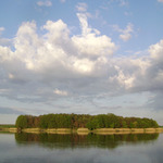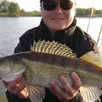 Погода постепенно портится, поднимается сильный ветер и на горизонте появляются мощные грозовые тучи. Нас, правда, дождём зацепило только один раз, и то не очень сильно, зато рядышком поливало дождём за день больше 5 раз. Ветер становится всё сильнее и мы решили попробовать спрятаться от него на мелководье в камышах, поискать там окуня и щуку. Ни окунь, ни щука на наши приманки не реагировали (или мы их так и не нашли), после обеда возвращаемся на судачью точку. Но ветер к тому времени был уже такой, что даже два якоря не держали на месте, да и волна неприятно болтала - сложно было сделать нормальную проводку. Плюнули на это дело и вышли на берег - пообедать и подремать, в надежде, что ветер утихнет хоть немного. Так и случилось - очередную грозовую тучу пронесло и к вечеру ветра почти не стало. Воспользовались этим и быстро вышли на воду. Первые же забросы на точку - и у меня и у товарища почти синхронно по поклёвке. Я достаю небольшого судачка около 700-800 г, у товарища на 1,5 кг. Увы, это были единственные вечерние поклёвки и на этом рыбалку пришлось заканчивать.