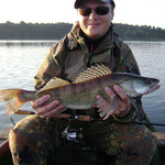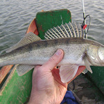 За прошедший месяц немного порыбачил на этом водоёме, в основном утром перед работой, хотя один раз плавал и целый день. Были как успешные рыбалки, так и провальные... Но на отличный клёв попал лишь раз - утром 10 сентября. Крайние пару рыбалок клёв не очень - 27 сентября вообще поклёвок не было, а 2 октября с трудом поймал пару мелких судачков - клыкастый не радует активностью. Хоть вода уже изрядно похолодала (эхолот показывает около 14 градусов), но то ли давление слишком высокое, то ли ещё по каким причинам - клевать не хочет даже на уловистые приманки и в проверенных точках...
