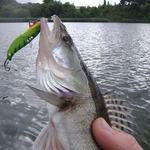 Напарник там же достал несколько чуть меньших окуней на вертушку Blue Fox. Так как вертушек у меня с собой не было - поставил цикаду в надежде поймать ещё окуней. В результате на цикаду окуня так и не поймал, зато её яростно атаковали микро-судачки. За день их выпустил штук 10-15, уже надоели - только зря приманки портят, хвосты отрывают.